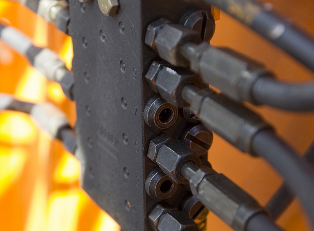 - «аварийного клапана» (исключение падения рабочего оборудования и кабины в случае разрыва рукава высокого давления);