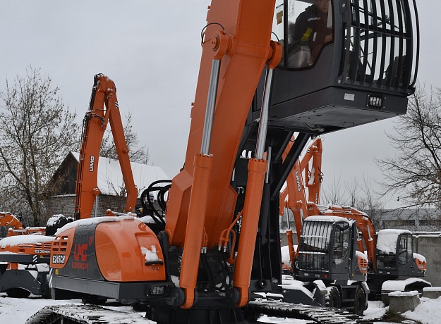 - Кабиной нового дизайна, современным внутренним интерьером, более компактными и эргономичными пультами полной обзорности рабочей зоны, усовершенствованной системой воздуховодов обдува стёкол и воздуховодов отопления/кондиционирования салона. В базовой комплектации присутствует воздушный отопитель Airtronic (Германия) и отдельный высокопроизводительный блок охлаждения, аудиоподготовка, эргономичное сиденье оператора с ремнем безопасности.