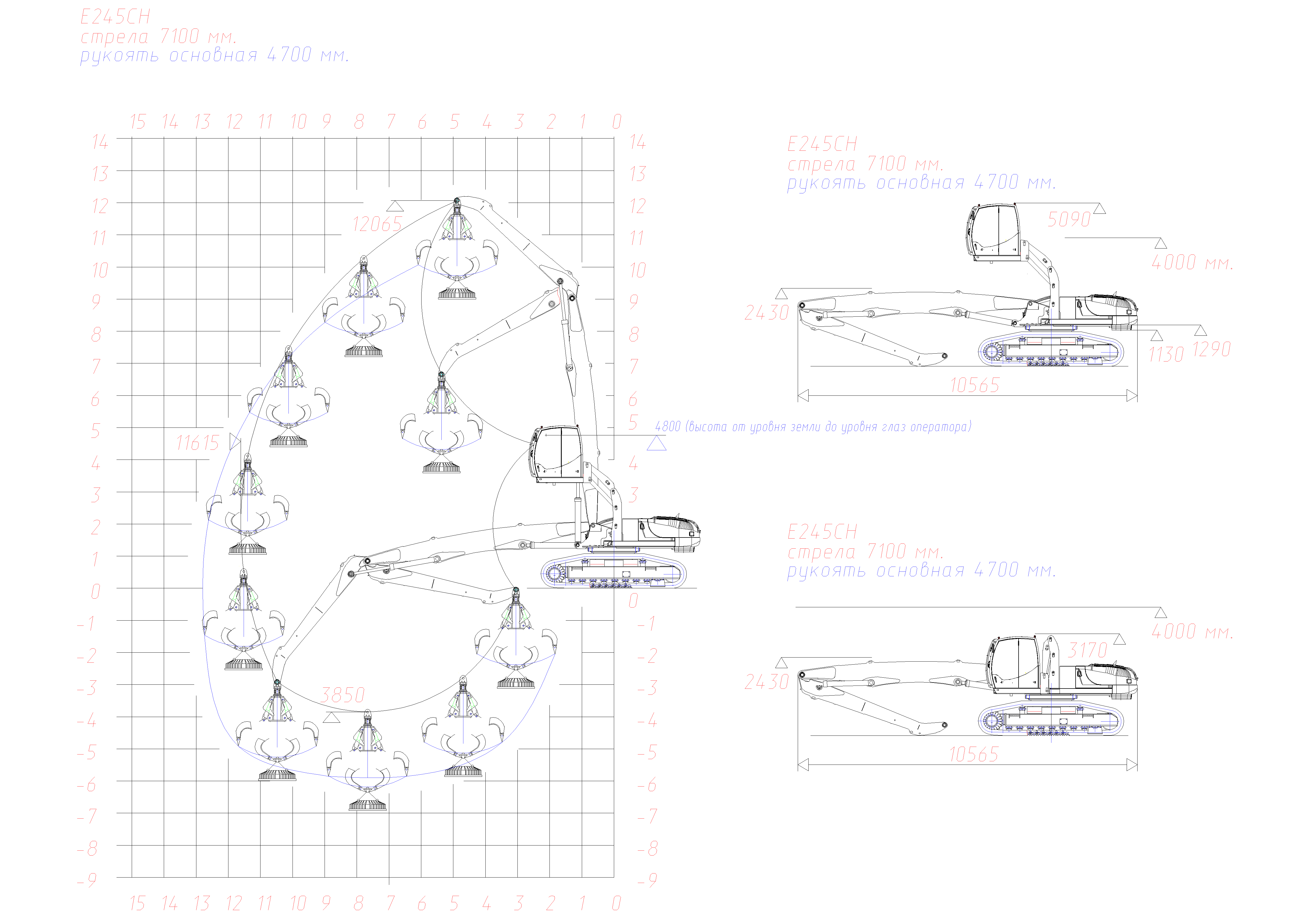 | Дорожное положение с не демонтированной рукоятью (рабочее оборудование лежит на уровне земли) | м | 4,7 | |||