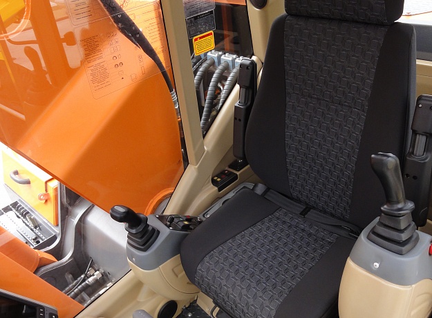 - Кабина нового дизайна. В базовой комплектации присутствует климатическая установка (отопитель-кондиционер), аудиоподготовка, эргономичное сиденье оператора с ремнем безопасности.
