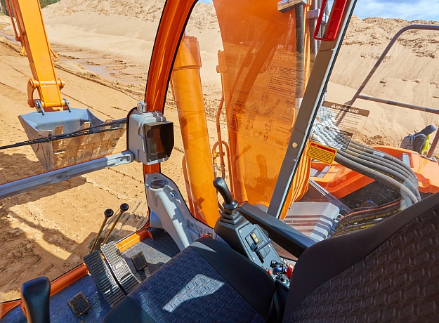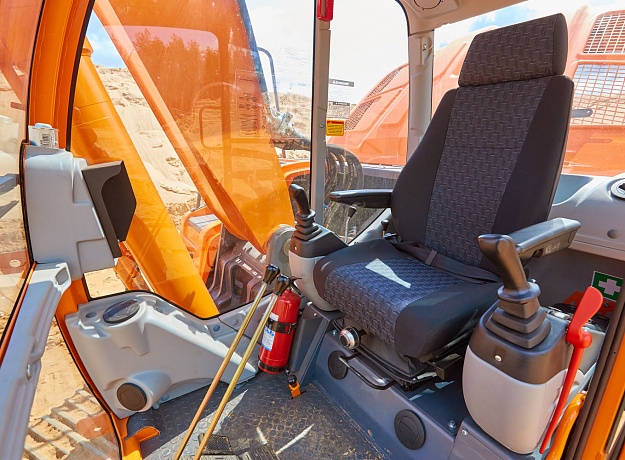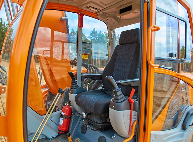Кабиной нового дизайна, современным внутренним интерьером, более компактными и эргономичными пультами управления, широкой дверью с интегрированной форточкой, большой площадью остекления с обеспечением полной обзорности рабочей зоны, усовершенствованной системой воздуховодов обдува стёкол и воздуховодов отопления/кондиционирования салона. В базовой комплектации присутствует климатическая установка (отопитель-кондиционер), аудиоподготовка, эргономичное сиденье оператора с ремнем безопасности.