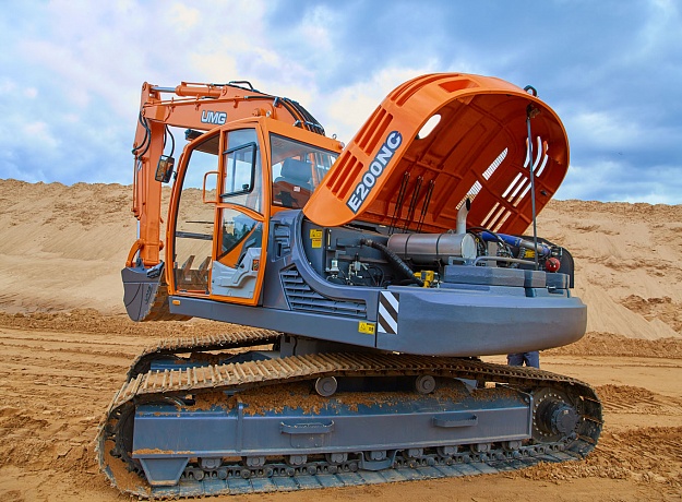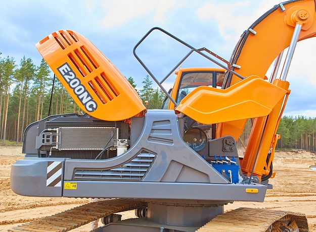 Капотной системой, обеспечивающей полный доступ ко всем узлам и агрегатам, что делает обслуживание удобным и быстрым. Экскаватор отличается высокой надежностью, увеличенными интервалами между техническими обслуживаниями, топливной экономичностью.
