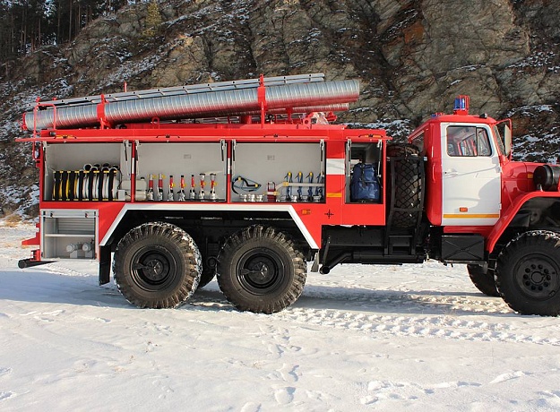 • Обладает высоко-проходимым шасси УРАЛ и достаточным запасом воды в цистерне.