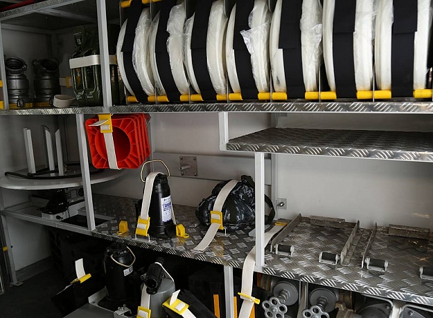 - Кузов автомобиля состоит из двух отдельных отсеков: просторного отапливаемого отсека, в котором располагается насосная установка, 2 места для членов боевого расчета и набор ПТВ, а также рукавного отсека с соответствующим рукавным оборудованием.