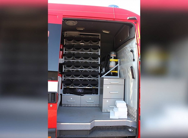 Предназначен для зарядки и выдачи готовых к применению баллонов дыхательных аппаратов со сжатым воздухом. В этом современном автомобиле реализовано автоматическое управление всеми машинными агрегатами.- Автомобиль оборудован дизельным генератором 12,8 КВТ, двумя компрессорами по 320 л/мин, телескопической мачтой, дымососом.